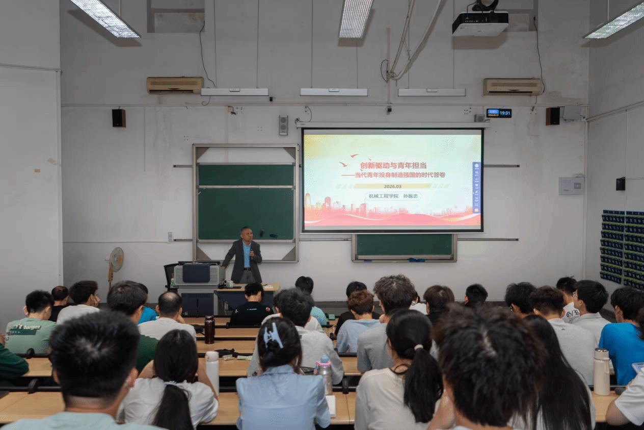 2026年3月19日,机械工程学院院长孙振忠以“创新驱动与青年担当——青年投身制造强国的时代”为主题,为2025级工业工程专业本科生讲思政课。课程紧密围绕国家创新驱动发展战略,深刻阐释了青年学子在建设制造强国伟大征程中的历史使命与时代担当。从国家“十五五”规划的宏伟蓝图切入,系统解读了制造强国战略的核心目标与重点任务。孙院长指出,“十五五”时期是我国由制造大国向制造强国跨越的关键攻坚期,高质量发展、新质生...