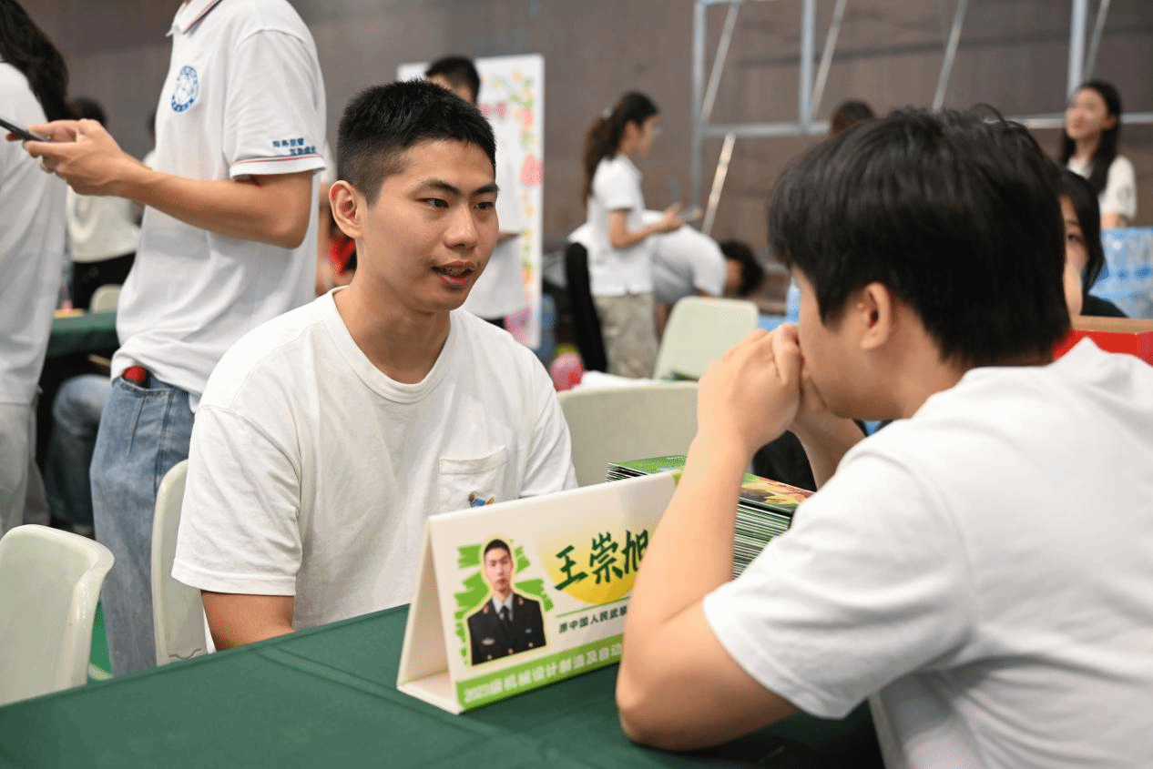 为了让征兵宣传更贴近学生、更深入、更广泛,学院积极征集原中国人民武装警察部队退役的2023级机械设计制造及自动化专业退役复学大学生王崇旭,在新生报到之际,利用空余时间在现场设立征兵宣传咨询点,以亲身经历为素材,为同学们讲解入伍的经历,以及简单介绍军营生活,为同学们开启了一扇了解军旅生活的真实之窗。面对新生好奇的咨询,深情讲述了自己怀着满腔热血投身军旅的初心,以及严格而又充实的军旅生活。王崇旭的深入解答分享不仅使广大学生对征兵政策、报名流程有了更深入地了解,也点燃了他们参军入伍的热情,激发了青年学子们的爱国情怀与报国之志。