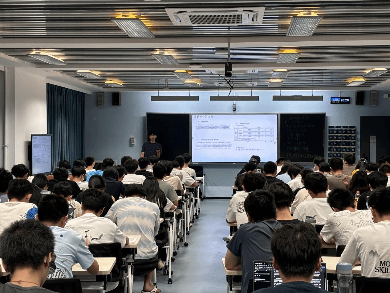 在“解码专业”环节,各助班为新生们揭开了各专业的“神秘面纱”。他们不仅详细介绍了专业的培养方向、核心课程、前沿研究方向以及强大的师资力量,更为新生们详细介绍了大学四年具体的学习计划与安排,让新生们对所学专业有了更立体、更深刻的认识,专业认同感和自豪感显著增强。与会新生纷纷表示,此次主题班会如同一场“及时雨”,不仅让自己对专业前景充满了信心,更对如何度过一个有意义的大学四年有了清晰的思路。