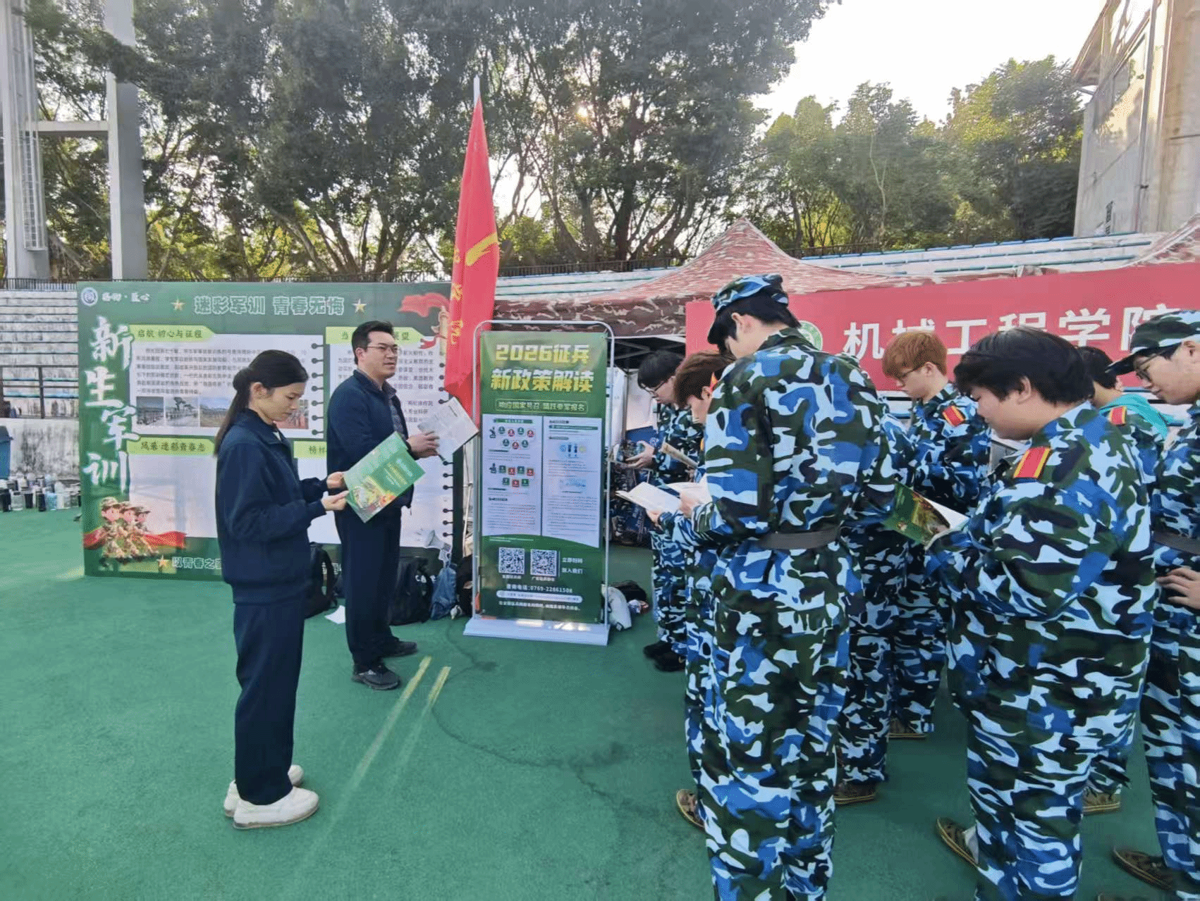 现场发放的《大学生征兵政策手册》详细列出了从兵役登记到退役安置的全流程指南,更嘱咐朋辈之间相互鼓励,踏出为国奉献的第一步。