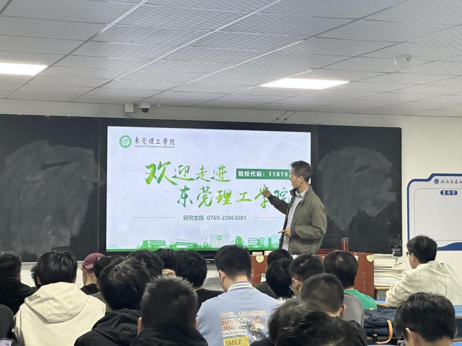 2025年10月19-21日,机械工程学院副院长曾达幸教授,研究生招生员胡娜玲、研究生秘书鲍艳艳组成宣讲团,先后赴湖南交通工程学院、湖南工程学院、湖南科技大学开展招生宣讲。让更多考生了解东莞理工学院研究生教育特色、培养条件和招生政策,进一步扩大学校知名度和影响力。