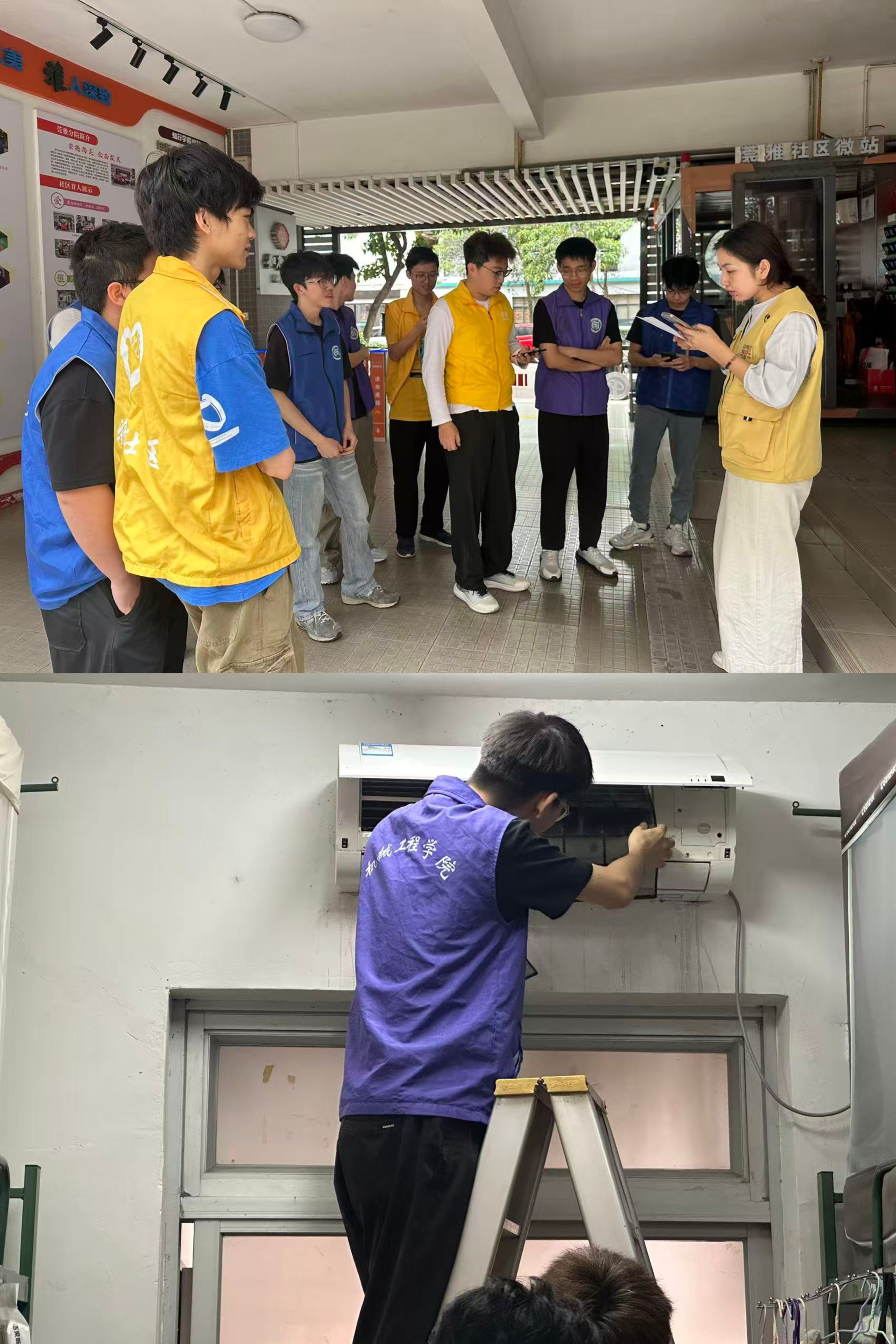 活动当天,志愿者们准时抵达莞雅社区,化身“清洁小能手”,有序进入同学们宿舍开展空调清洗服务。大家分工协作、细致认真,拆滤网、擦外壳、清灰尘、除污垢,不放过每一个死角。同学们不怕脏、不怕累,以饱满的热情投入服务,用点滴行动诠释新时代雷锋精神。