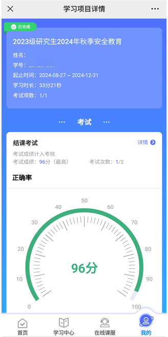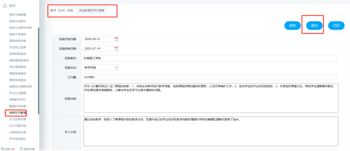 (1)研究生登录研究生教育教学管理系统,选择【培养管理】-【培养环节管理】-【安全教育及学术道德】-【上传入学以后参加的安全及学术道德教育情况的证明材料】-【提交】。