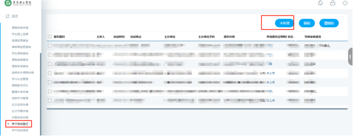 (1)研究生登录研究生教育教学管理系统。日常学术活动登记选择【培养管理】-【学术活动登记】-学术活动考核选择选择【培养管理】-【学术活动考核】-【提交考核申请】。