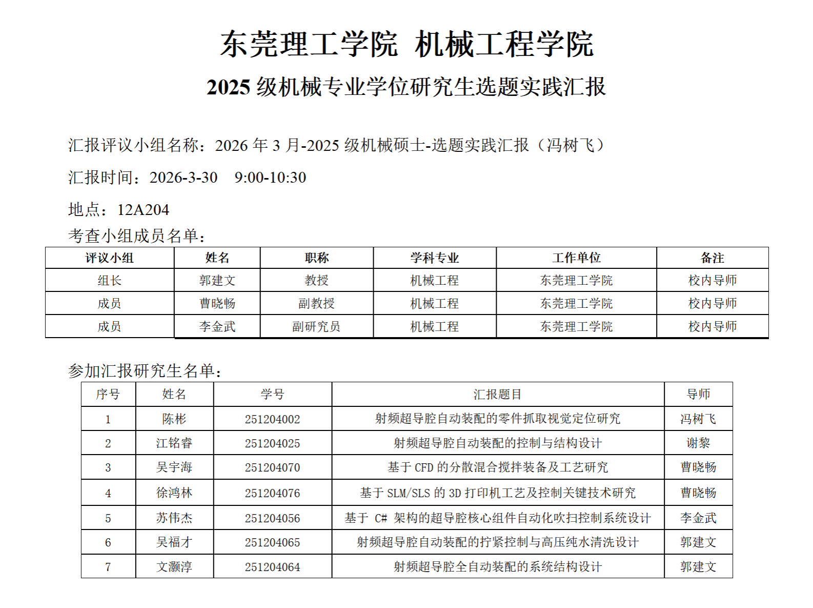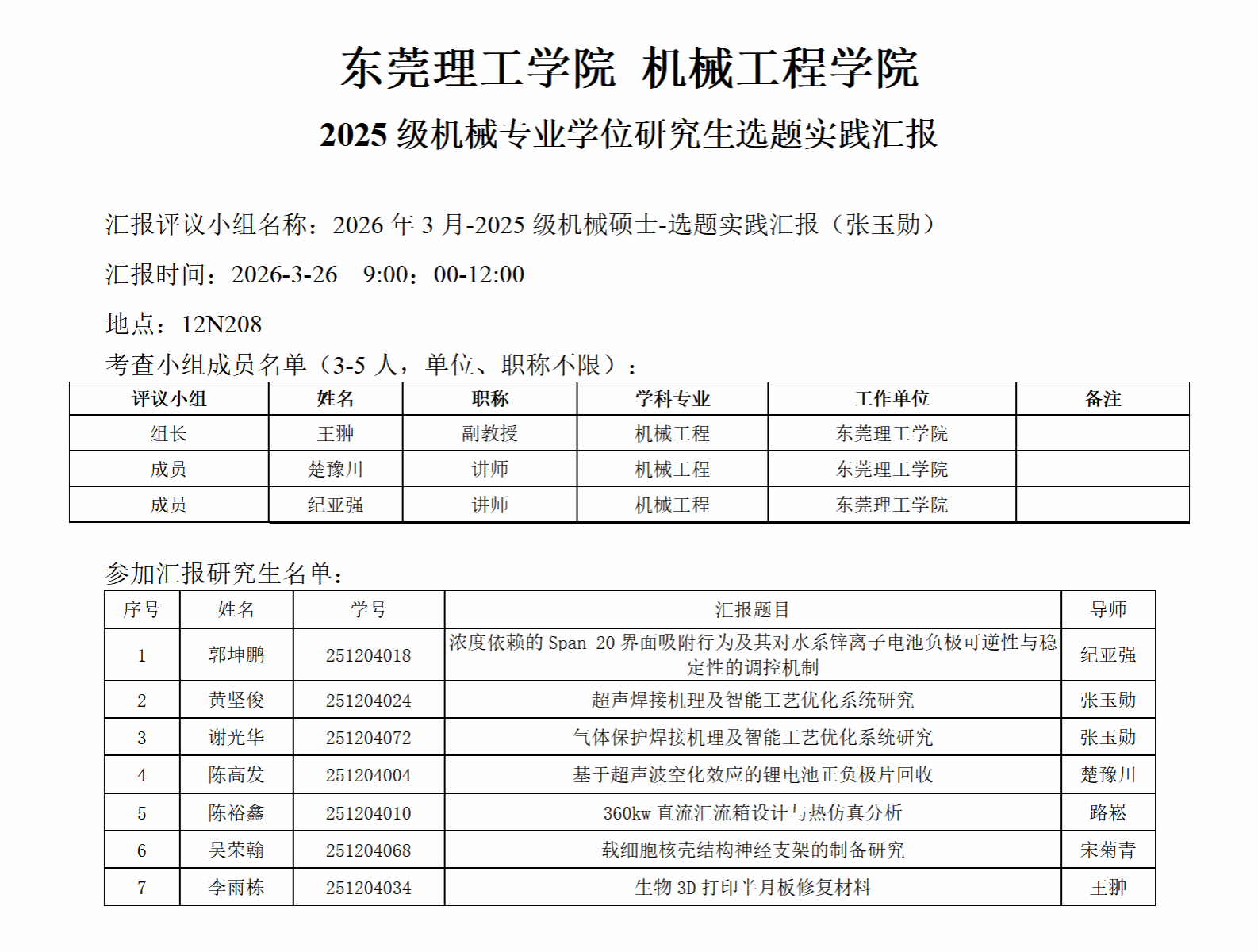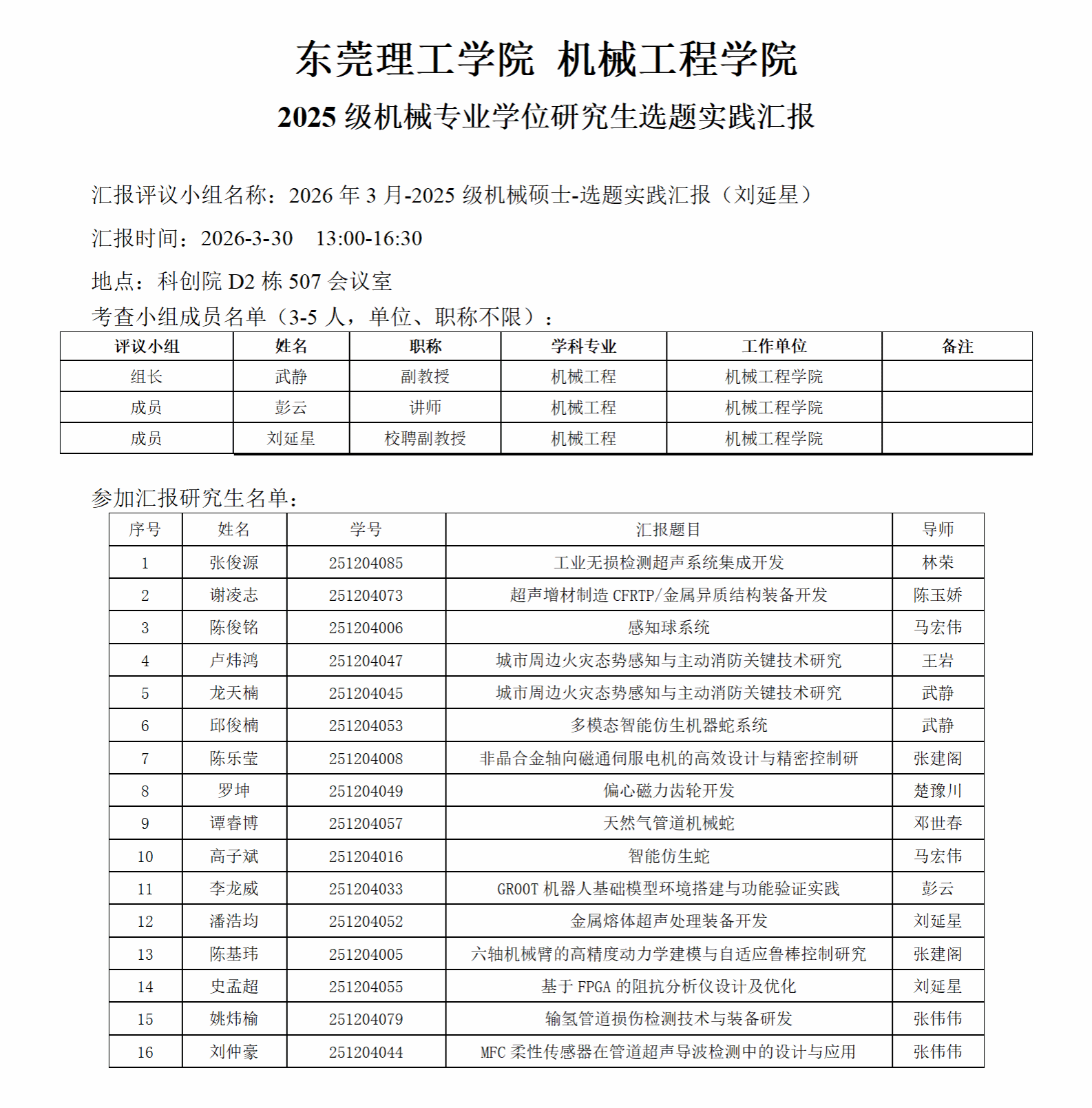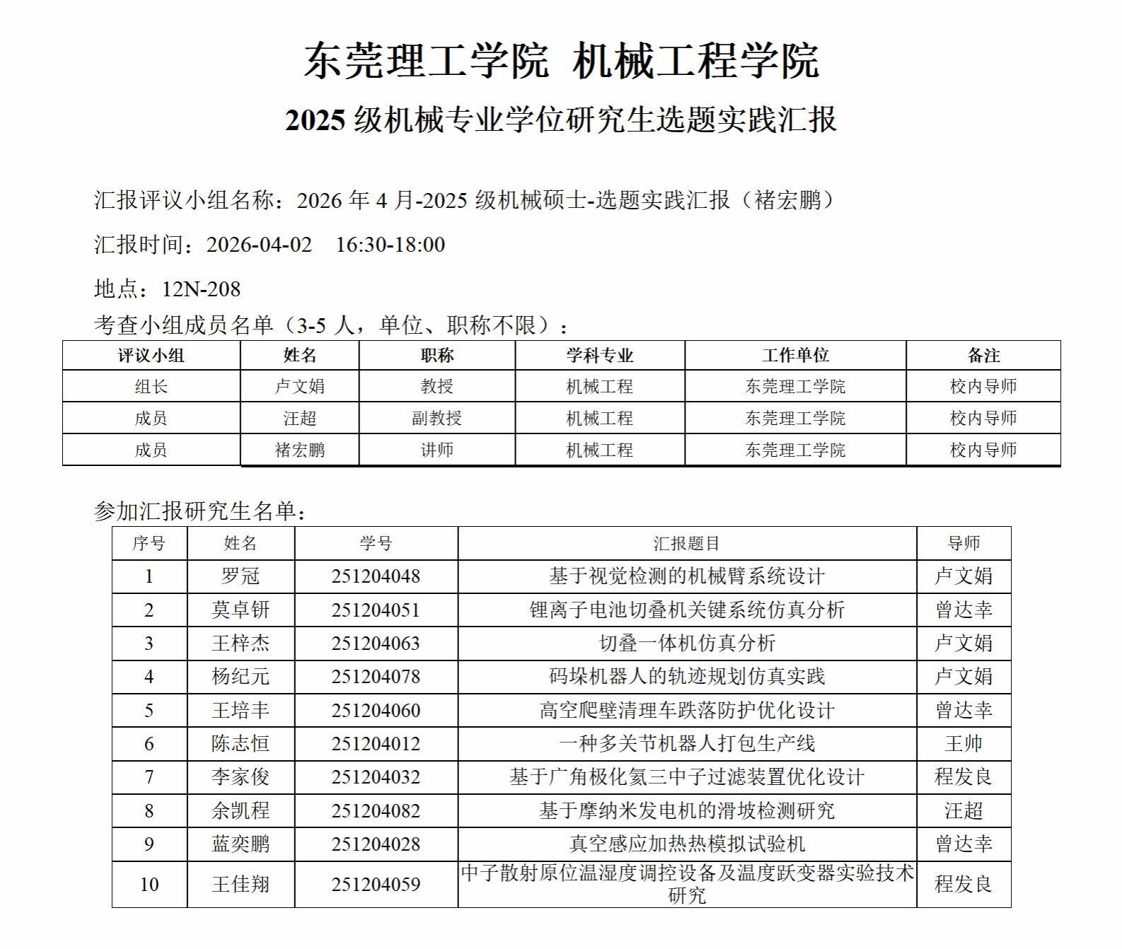 机械工程学院2025级机械专业学位研究生选题实践汇报