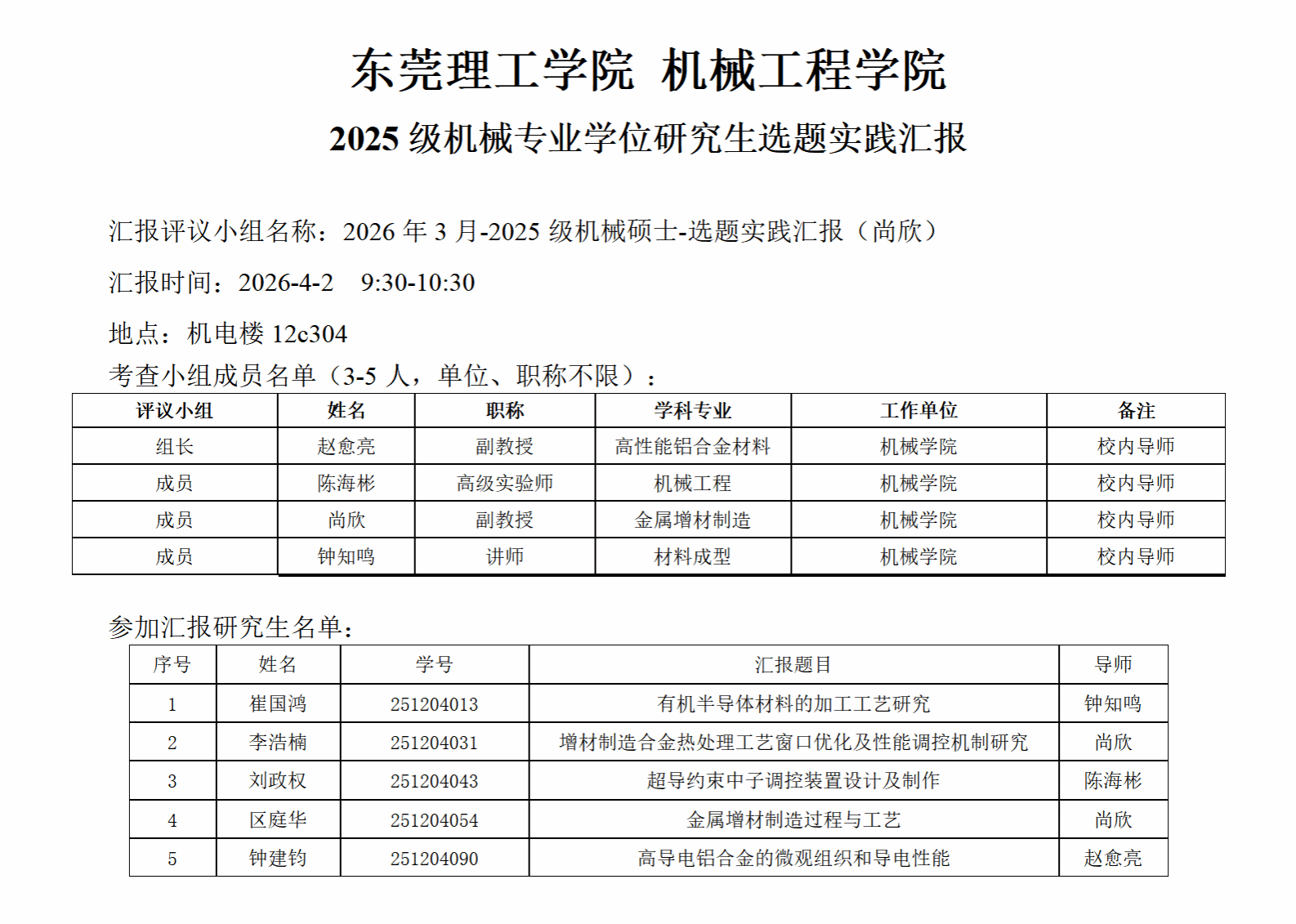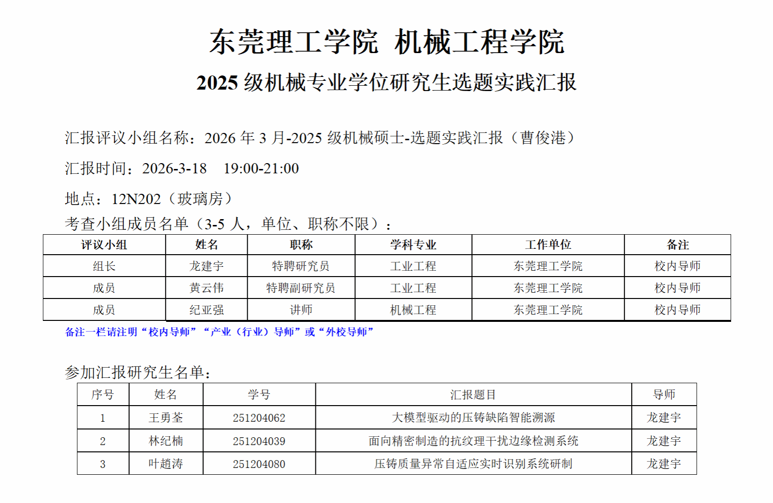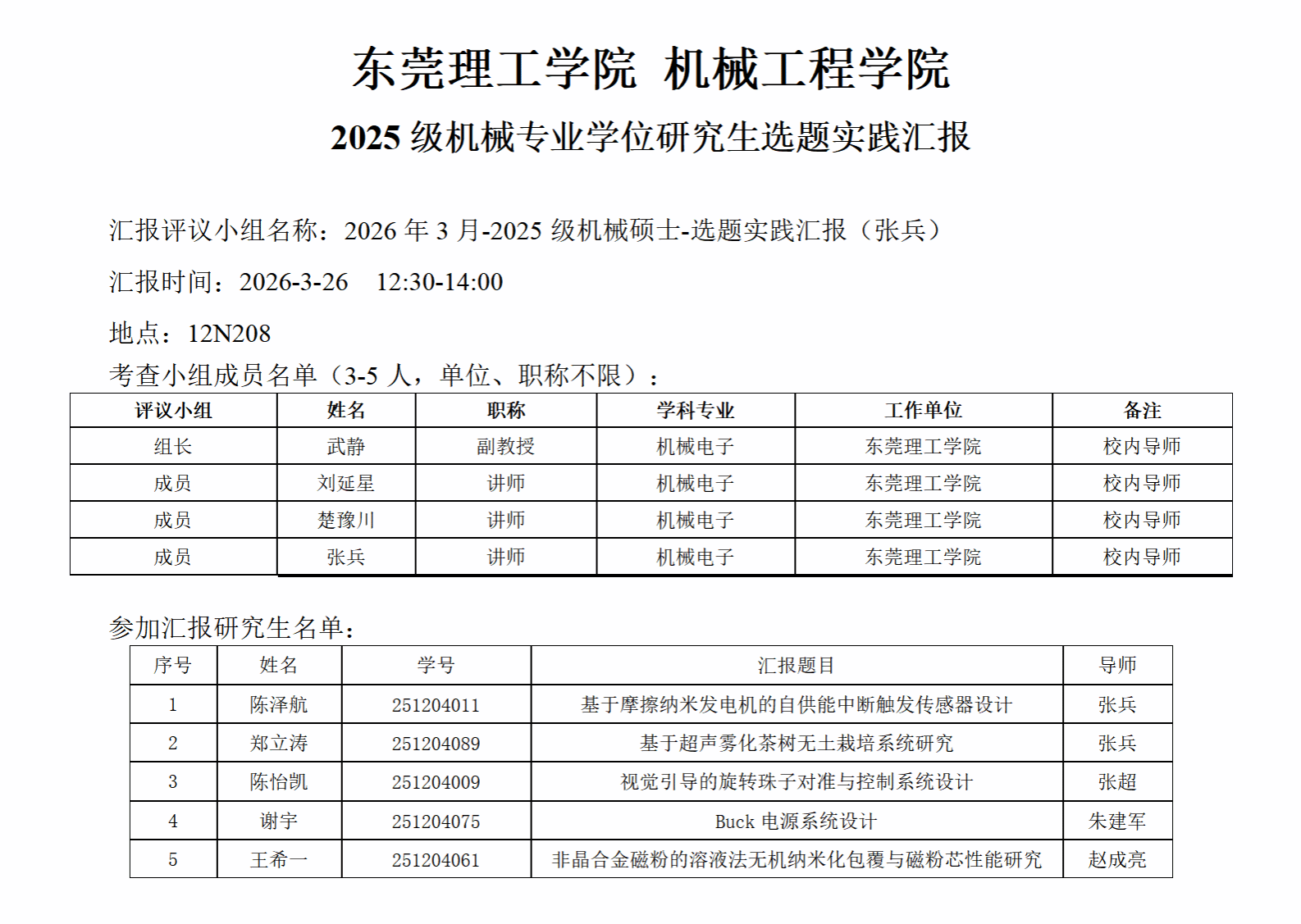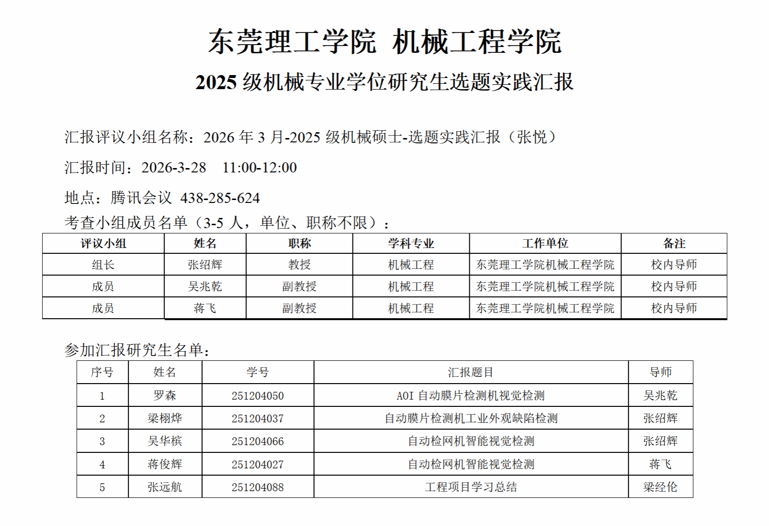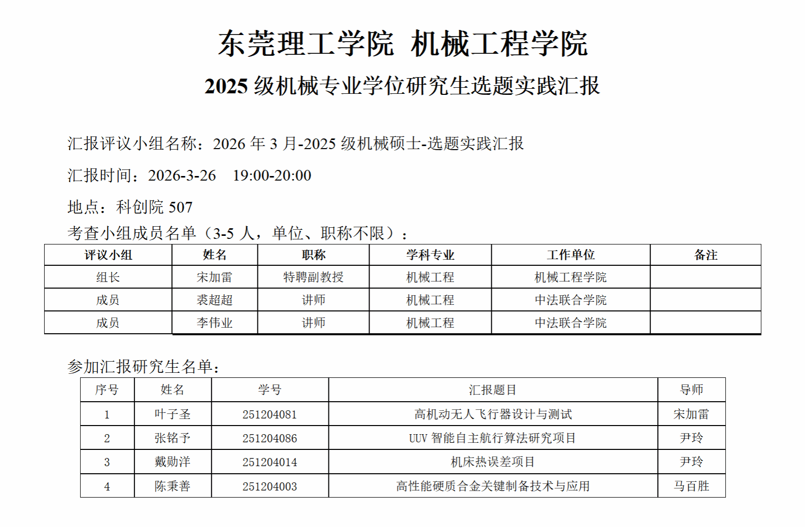机械工程学院2025级机械专业学位研究生选题实践汇报