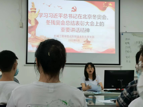 支部全体党员共同学习习近平总书记在北京冬奥会、冬残奥会总结表彰大会上的重要讲话精神。徐滋琪强调,我们要大力弘扬胸怀大局、自信开放、迎难而上、追求卓越、共创未来的北京冬奥精神,以更加坚定的自信、更加坚决的勇气,向着实现第二个百年奋斗目标奋勇前进。随后,全体党员继续学习习近平总书记在庆祝共青团成立100周年大会上的重要讲话精神。徐滋琪指出,我们作为新青年,要为实现伟大中国梦奉献青春力量,在强国发展中“拼一拼”,让青春之光在学生一线绽放异彩。