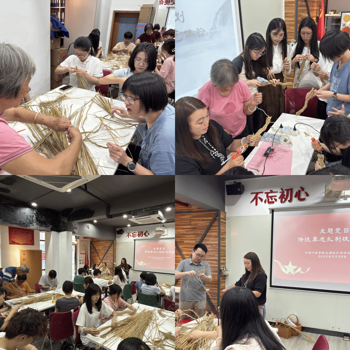为深入贯彻落实党的二十大关于“推进文化自信自强,铸就社会主义文化新辉煌”的重要精神,进一步增强大学生党员对中华优秀传统文化的认同感和自豪感,5月29日下午,机械工程学院应用设计本科生党支部开展了一场别开生面的主题党日——传统草龙扎制技艺体验。活动邀请到东莞非遗横沥舞草龙传承人黄耀林师傅及其徒弟叶淑华走进校园、社区,为支部全体党员带来了一场沉浸式的非遗文化盛宴,让大家在感受传统农耕劳动情怀和古代劳动人民创造精神的同时,也将设计专业知识与传统文化传承相结合,涵养深厚的文化底蕴。